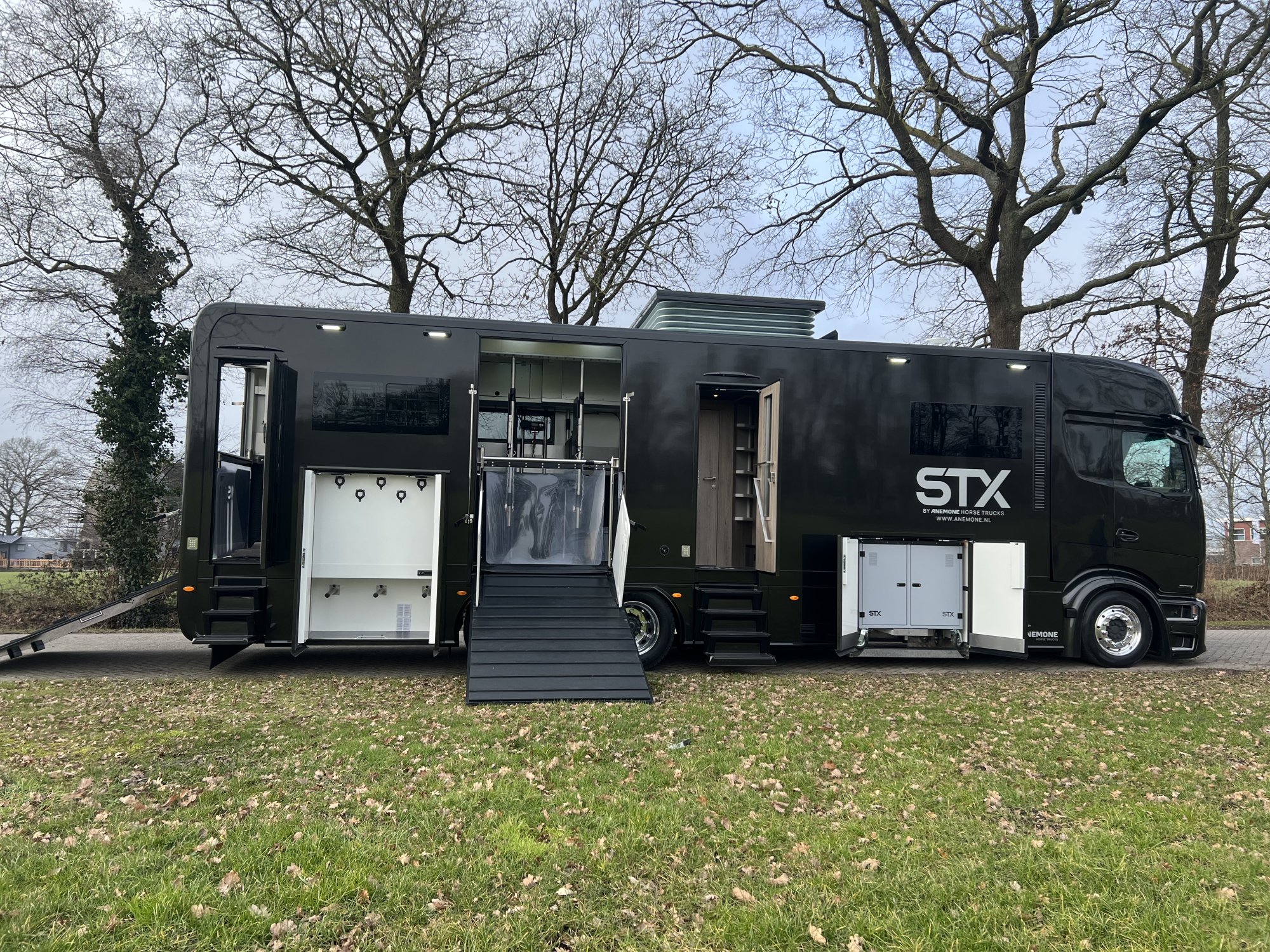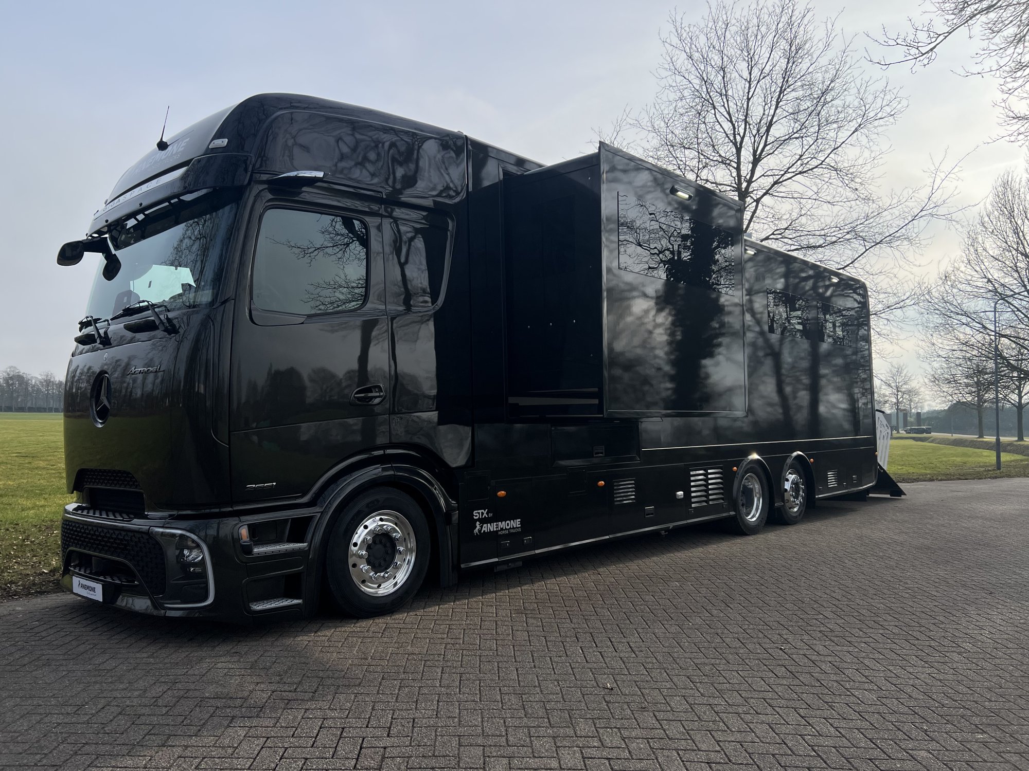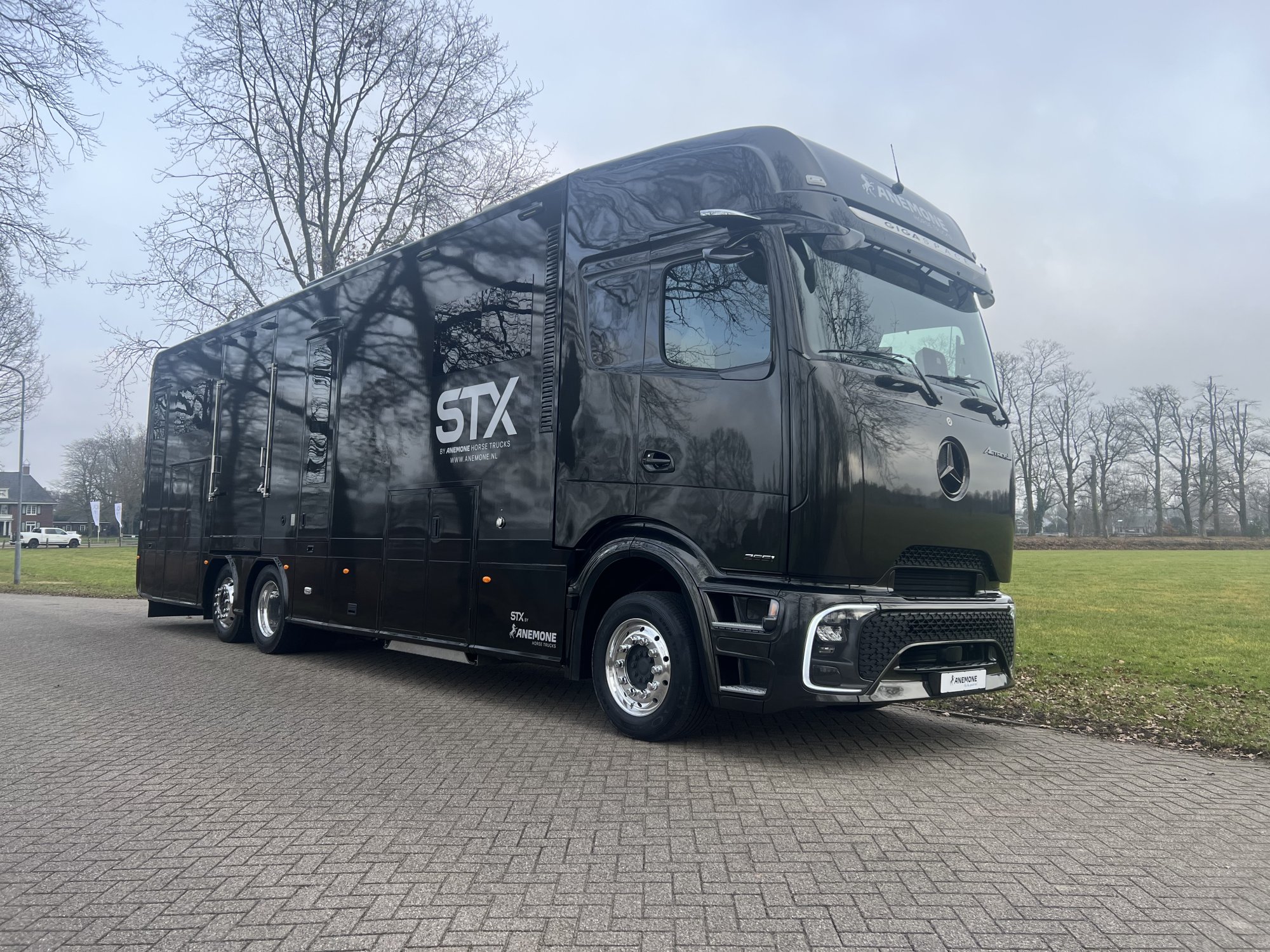 This 2025 Mercedes Actros with STX bodywork is the ultimate truck for professional horse transport. Designed to carry up to six horses, it ensures maximum safety, stability, and optimal ventilation during every journey. The spacious living area offers exceptional comfort and practicality, making it ideal for multi-day competitions and long trips. The premium living interior features high-quality materials, refined finishes, and a smart layout that creates a luxurious and relaxing atmosphere. Powered by Mercedes’ advanced technology, this Actros delivers reliability, performance, and peace of mind. A perfectly engineered truck where quality, safety, and comfort come together for those who demand the very best.