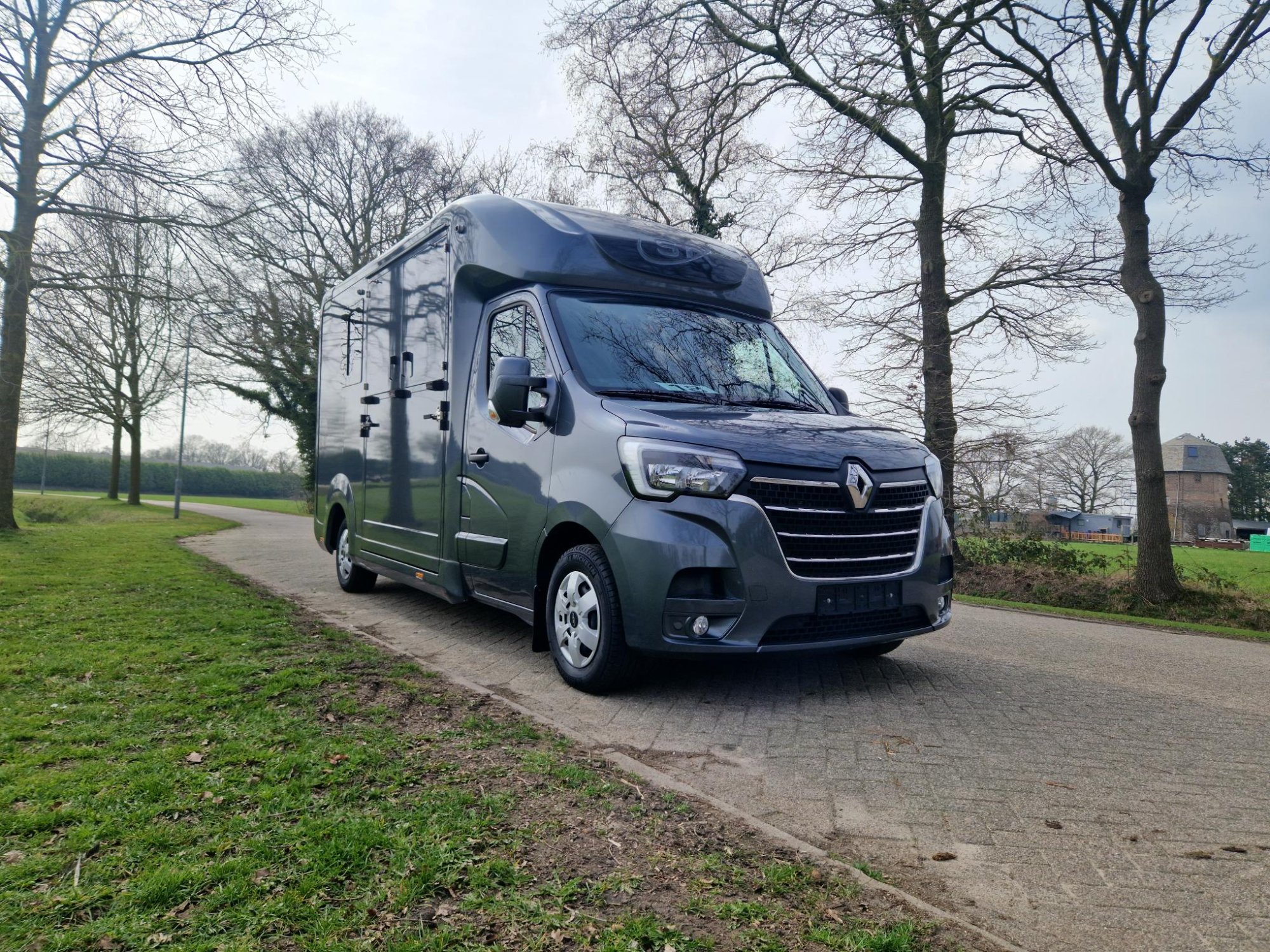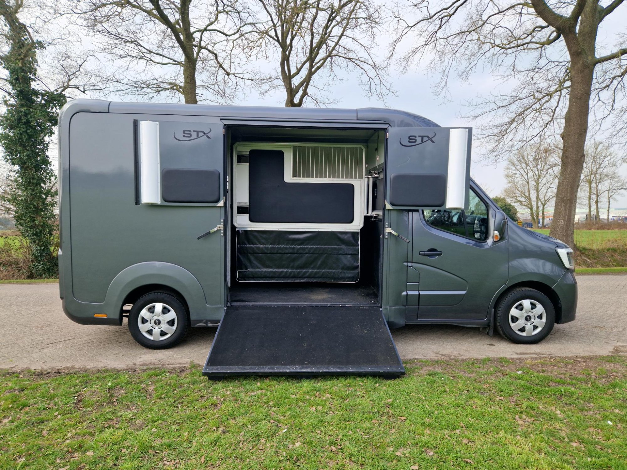 A young Renault Master Automatic 180 hp 2-horsetruck, presented in the Pro-Safety Stallion layout with a high-quality STX Body. This horse transporter combines power, safety, and comfort for both horse and driver.