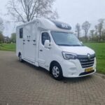 A stunning Renault Master 165 hp 2-horsetruck, presented in the Pro-Safety Stallion layout with a high-quality STX Body. This horse transporter combines power, safety, and comfort for both horse and driver.