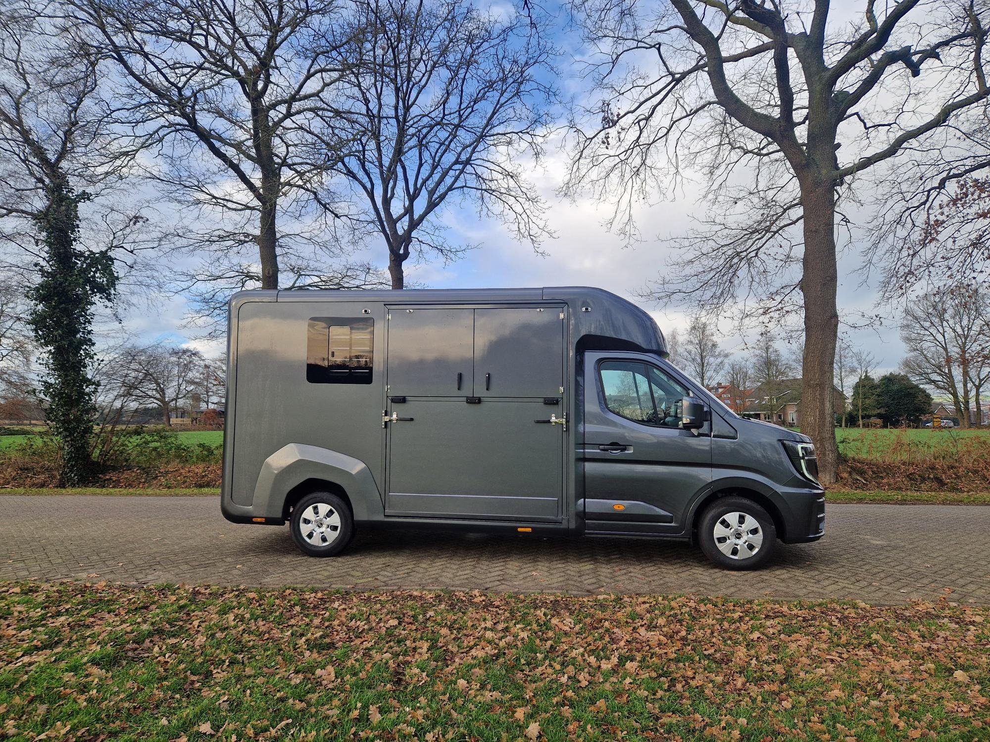 This horsebox is built on the reliable Renault Master, equipped with a manual gearbox for maximum control. Thanks to modern driving aids such as hill-start assist, a rear-view camera, and parking sensors, you can drive confidently and easily – even on narrow country roads or busy parking areas.