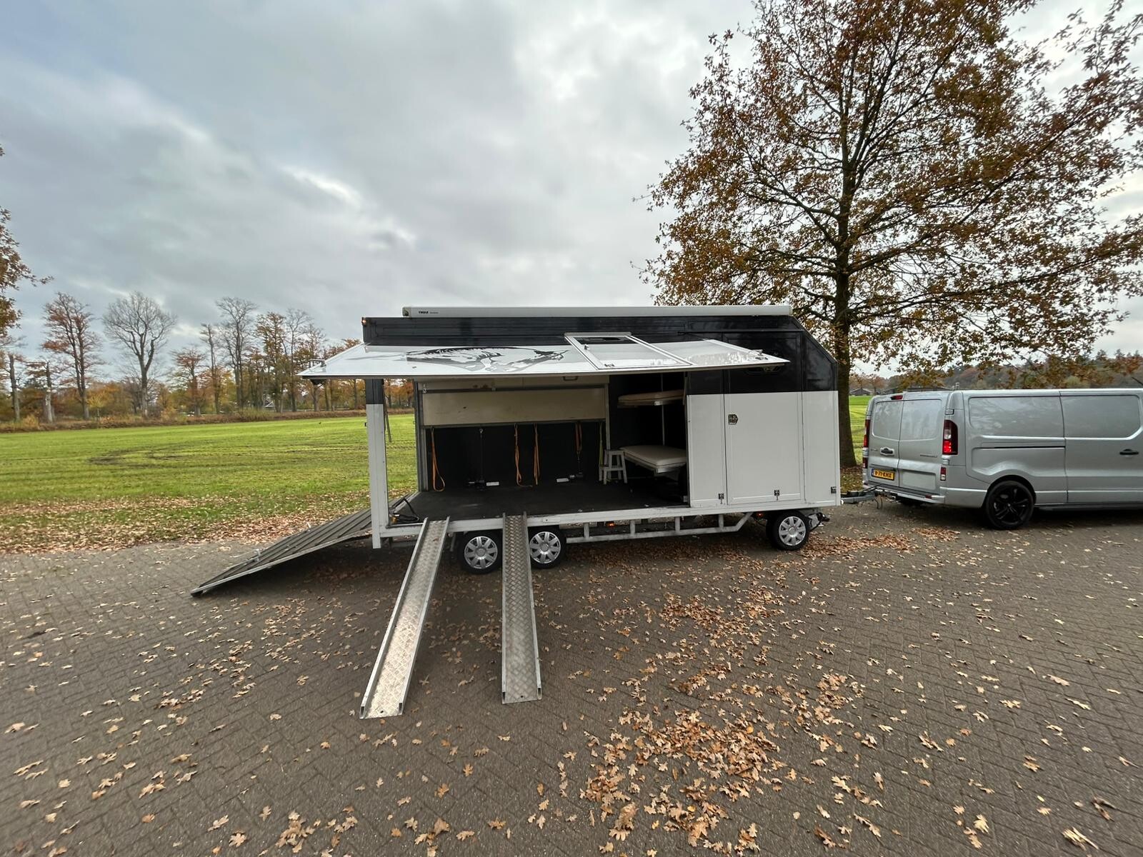 The Weijer Schamel trailer is designed for anyone who finds safety, comfort, and flexibility important. Thanks to the enclosed construction, you can safely transport carriages or other valuable loads, regardless of the weather. The integrated winch makes loading carriages easy, so you can get everything into place smoothly without heavy lifting.