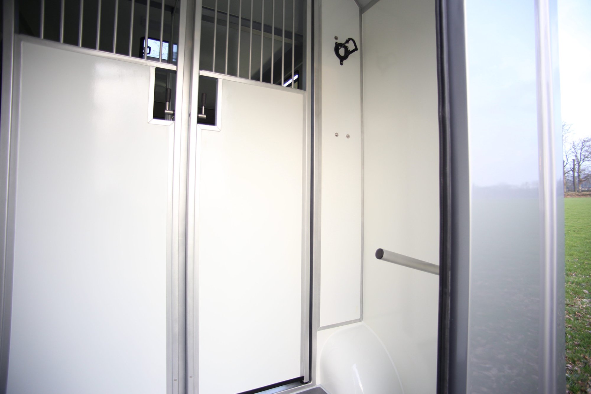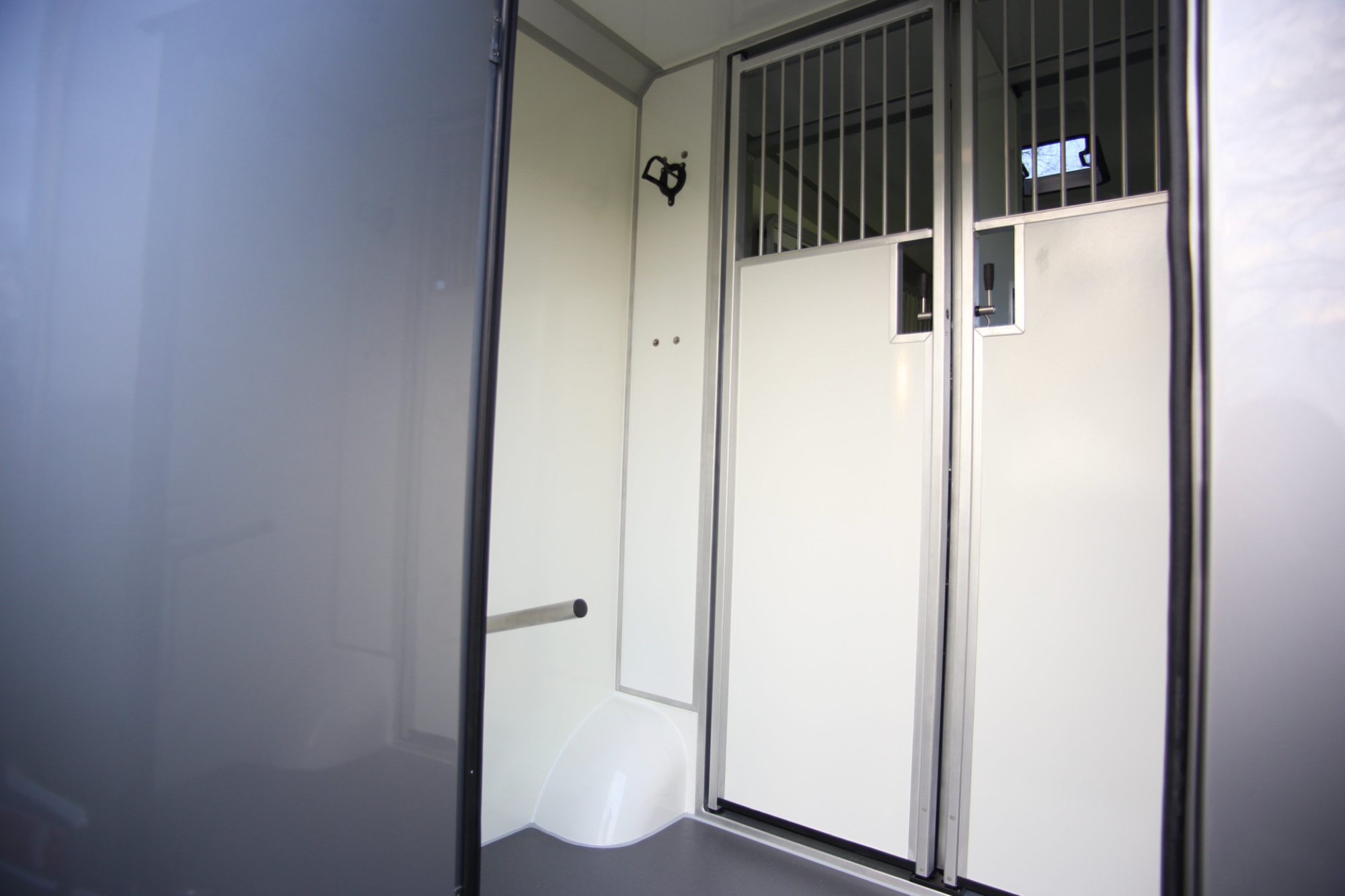 De Pro Safety hengstenuitvoering zorgt voor maximale veiligheid onderweg. De paarden staan volledig gescheiden van elkaar met een stevige tussenschotconstructie, ideaal voor hengsten of paarden die extra rust en ruimte nodig hebben tijdens het transport.